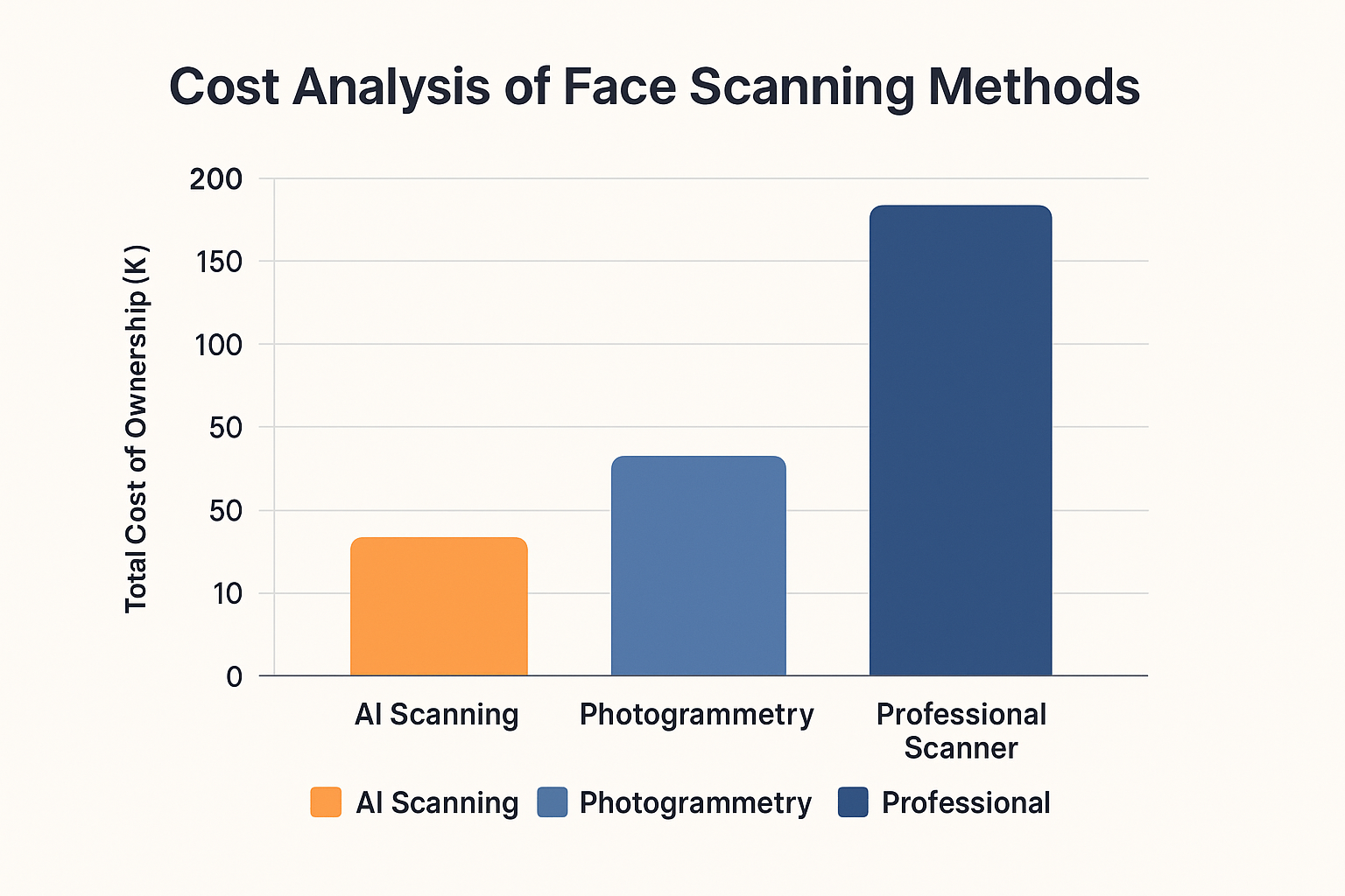 With Face to 3D, costs start from $1 per scan. Traditional methods cost $50-$2000 per scan depending on the technology used.